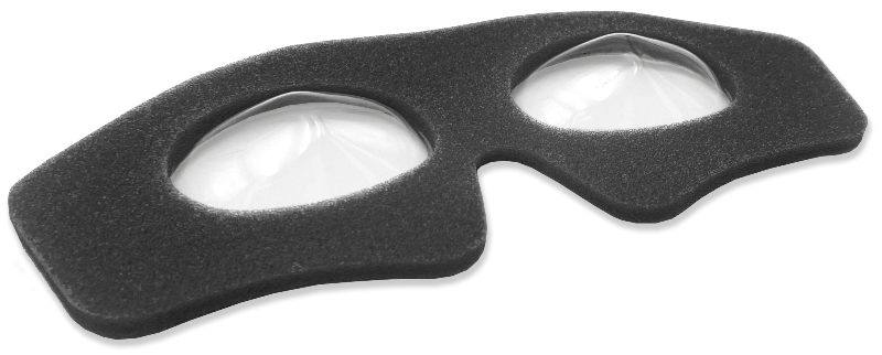 • Transparent, rigid lenses are uniquely contoured to deflect objects away from the patient’s eyes